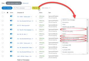 - Set the filters for the ACOS. The recommendation is anything between 1% to 20%