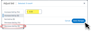- Select Decrease bid by ($) and enter a certain amount to increase the bid by